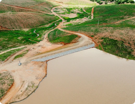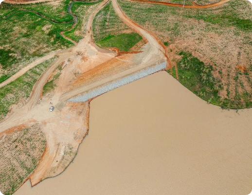 Barragens seguras e duradouras, projetadas com precisão geotécnica.